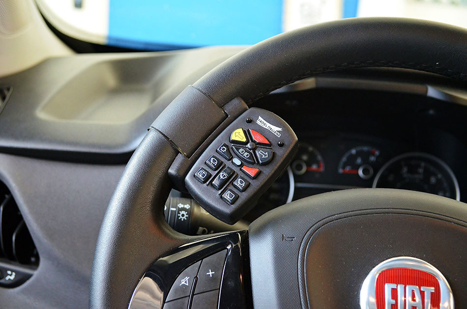 La particolare configurazione ergonomica della tastiera, i tre pulsanti diversamente colorati, il giallo riferito all'indicatore di direzione sinistro, e i due rossi per clacson e luci di emergenza, permettono, durante la guida, l'immediato riconoscimento delle funzioni senza rischi di distrazioni.